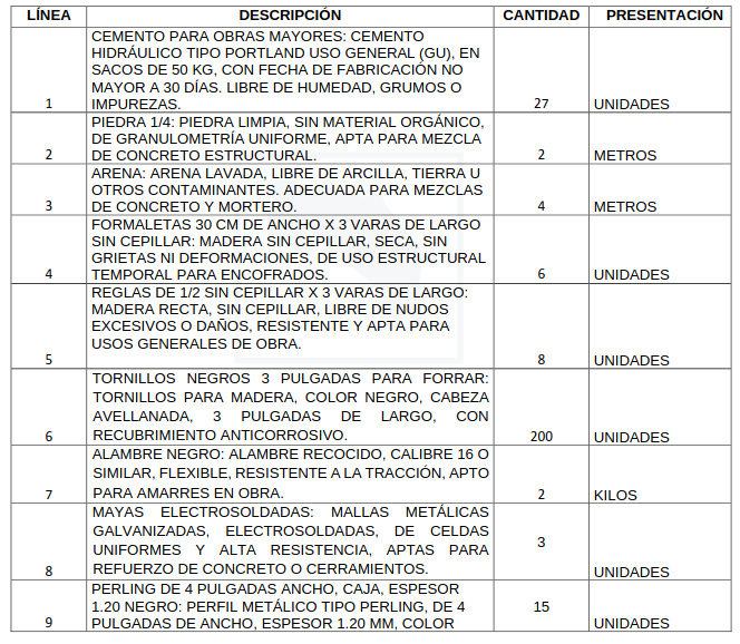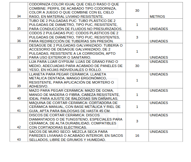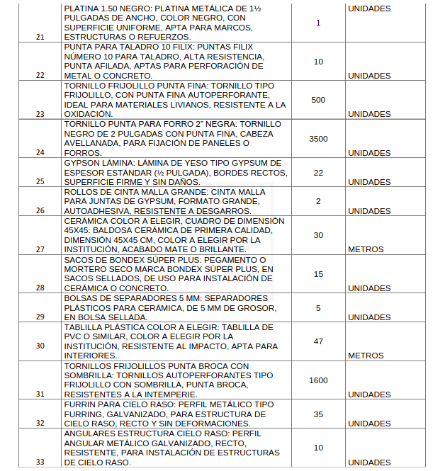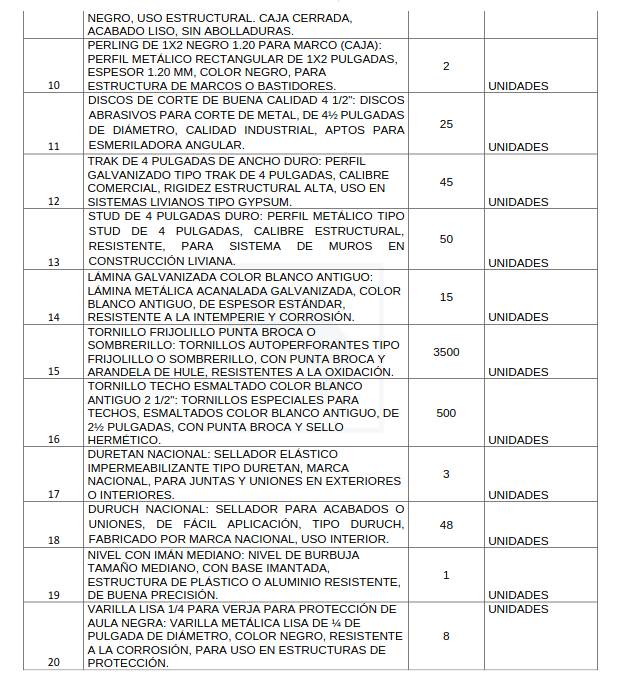 • Anexo 1: Lista de insumos de ferretería solicitados (con cantidades y especificaciones).